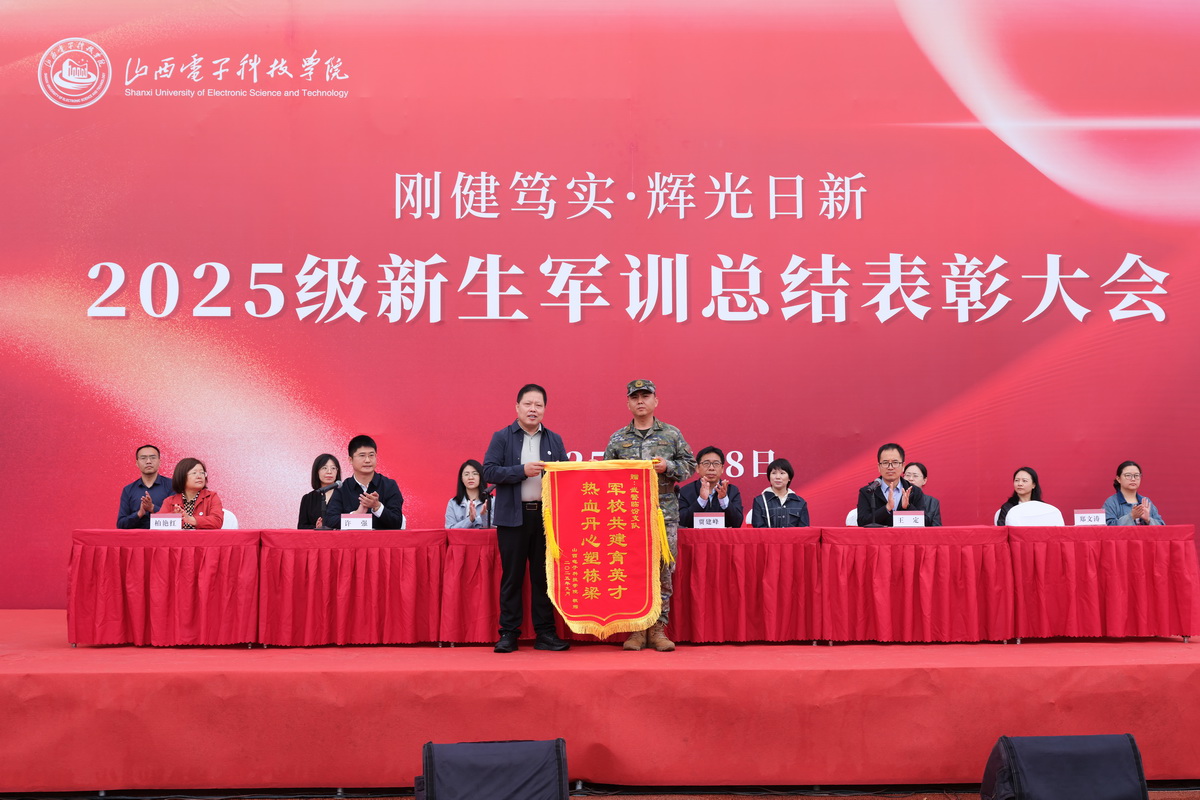 贾建峰作了军训工作总结。他代表学校向全程坚守、科学施训的武警临汾支队教官们,及参加军训工作的各职能部门的同志们表示感谢;向不畏艰苦、奋勇争先,顺利完成军训任务的2025级全体新生表示祝贺。他强调军训的意义远不止于技能的提升与品质的塑造,更在于为同学们的大学生活乃至人生道路奠定坚实基础,希望同学们把军训中收获的坚韧、团结、自律与担当,转化为学习知识、提升能力、服务社会的动力,以军训为新的起点,以更饱满的热情、更昂扬的姿态,在山电这片沃土上,不负韶华、不负时代,成长为有理想、敢担当、能吃苦、肯奋斗的新时代好青年。