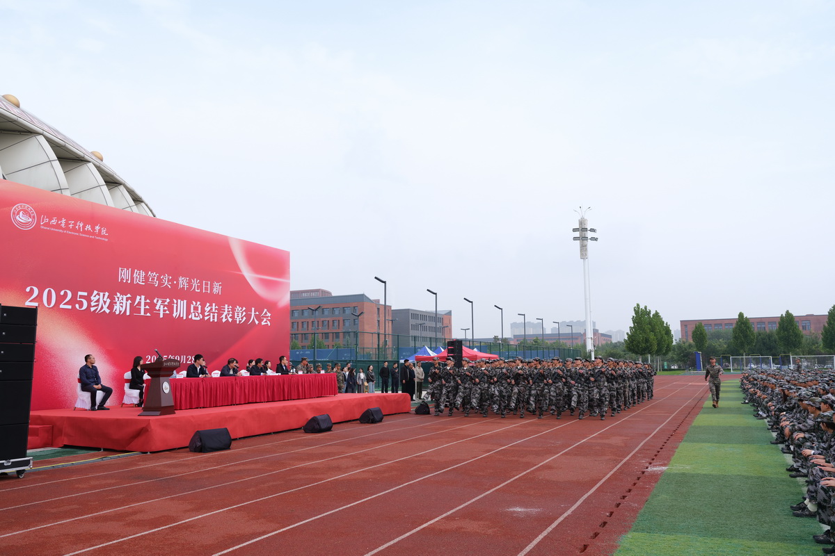 学生工作部(武装部)负责人王定宣读学校《关于表彰2025级新生军训工作先进集体和优秀个人的决定》。军训中,同学们严格训练,动作规范,遵守纪律,互帮互助,团结友爱,收获很大,既增强了体质,又磨练了意志,同时培养了团结协作的精神,展示了良好的精神面貌和集体荣誉感,涌现出了一批先进集体和个人。