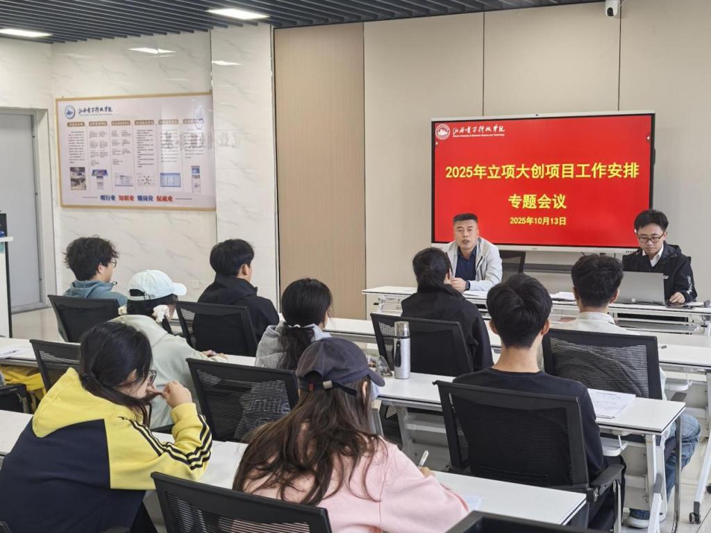 为扎实推进2025年大学生创新训练计划项目(简称“大创项目”)落地实施,明确项目推进关键节点、压实工作责任、凝聚各方保障力量,确保17个立项项目(含3项国家级、8项省级、6项校级)高标准完成研究任务、产出优质成果。10月13日在我校“一站式”学生社区就业创业服务基地召开了2025年立项大创项目专题工作会议,学生工作部相关工作人员、各项目团队负责人参加了会议。