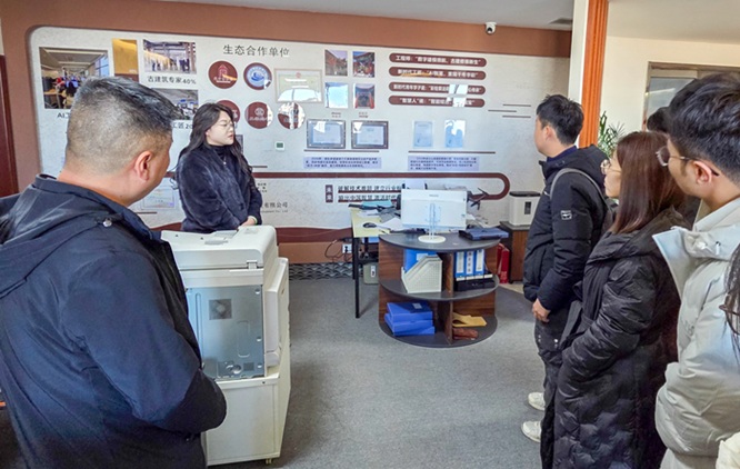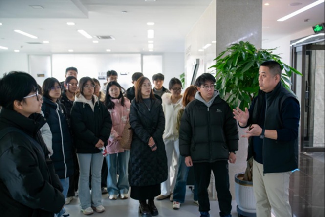 在临汾创泽具身智能机器人有限公司,徐建辉总经理围绕智能安防巡检机器人、智能配送机器人等系列产品,从应用场景、结构特征、功能用途等方面作了细致讲解,让同学们对智能机器人产业的发展现状与技术应用前景有了直观了解。结合企业招聘与项目合作经验,徐建辉总经理一针见血地指出当前大学生创新项目普遍存在的实用性不强、缺乏市场思维等突出问题,并针对性地提出了“聚焦实际需求、强化场景适配、注重成果转化”的解决思路,为同学们优化项目方案提供了宝贵借鉴。随后,团队一行走进山西阙影数缮发展有限公司。杨怡鑫总经理结合企业自身研发实践,向同学们系统分享了“创意萌发—需求调研—产品研发—市场推广”的完整转化流程。他强调,创新并非天马行空的空想,而是基于对市场需求的充分洞察与精准把握,进而靶向发力的务实实践,鼓励同学们在创新过程中既要保持思维活力,更要立足实际、脚踏实地,让创新成果真正服务于社会需求。